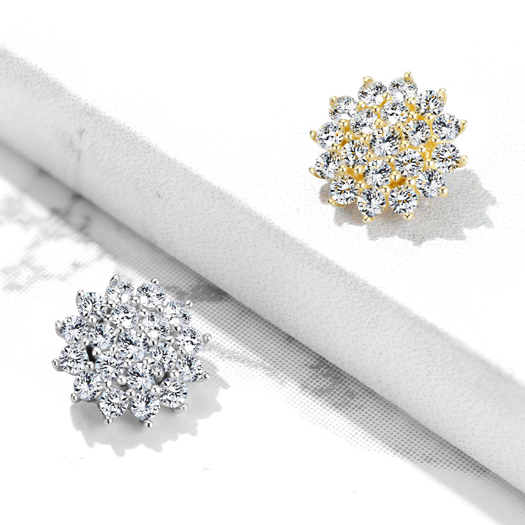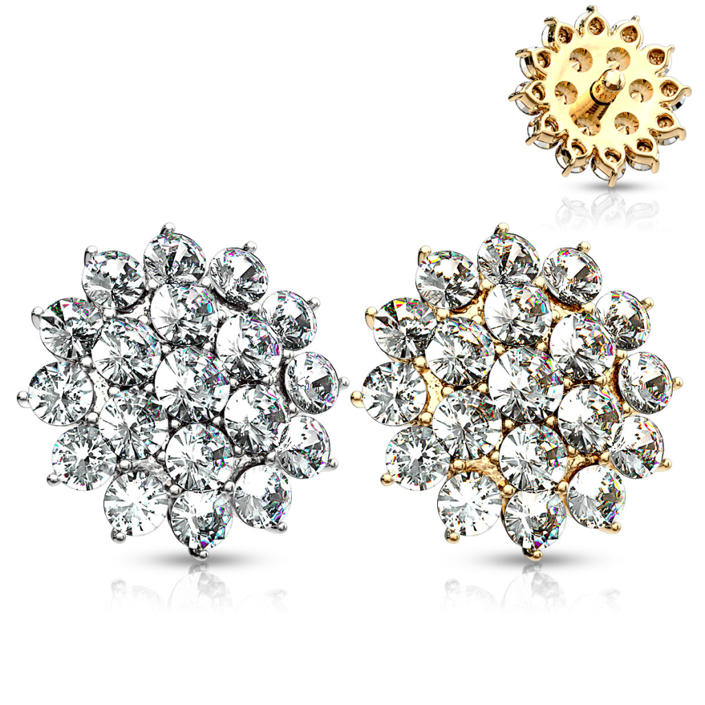 Siit sa leiad originaalse ehte, millega sa võid kaunistada oma dermali. See on kuundatud lilleks, mida kaunistavad arvukad klaarid kivikesed, mis annavad talle ebatavalise sära. Kivid püsivad kindlalt paigas tänu neljatipulisele kinnitusele, mis hoiab igat kivikest eraldi.