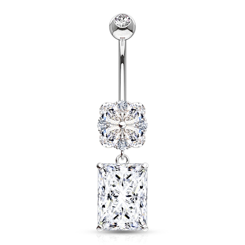 See kaunis ning elegantne nabaneet on valmistatud 14-karaadisest kullast ning me võime kindlalt öelda, et see kuulub printsesside maailma. Ehe ripats on kaunistatud suure ristkülikukujulise kiviga, millel on vapustav Asscher tüüpi lõige. See lõige on enam kui 100 aastat vana ning selle mõtlesid välja Asscher perekonnanimega vennad, keda palkas maailma suurima teemandi lihvimiseks Madalmaade kuningapere. Selle lõike puhul lõigatakse teemant alguses riskülikukujuliseks, siis lihvitakse erinevate nurkade alt, et saavutada erinevaid pindu ja tasemeid. Tänu sellele saavutab kivi oma maksimaalse võimaliku sära ja visuaalselt kauni efekti.