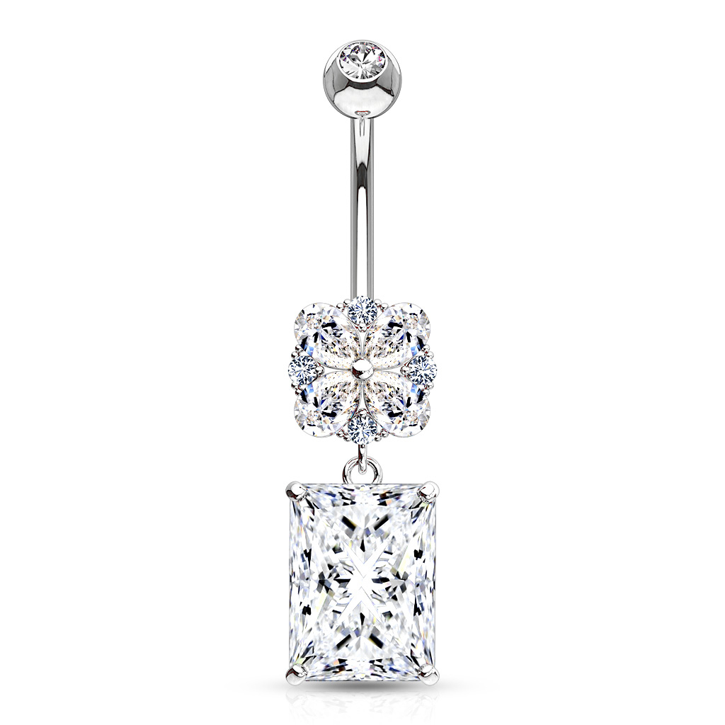 See kaunis ning elegantne nabaneet on valmistatud 14-karaadisest kullast ning me võime kindlalt öelda, et see kuulub printsesside maailma. Ehe ripats on kaunistatud suure ristkülikukujulise kiviga, millel on vapustav Asscher tüüpi lõige. See lõige on enam kui 100 aastat vana ning selle mõtlesid välja Asscher perekonnanimega vennad, keda palkas maailma suurima teemandi lihvimiseks Madalmaade kuningapere. Selle lõike puhul lõigatakse teemant alguses riskülikukujuliseks, siis lihvitakse erinevate nurkade alt, et saavutada erinevaid pindu ja tasemeid. Tänu sellele saavutab kivi oma maksimaalse võimaliku sära ja visuaalselt kauni efekti.