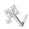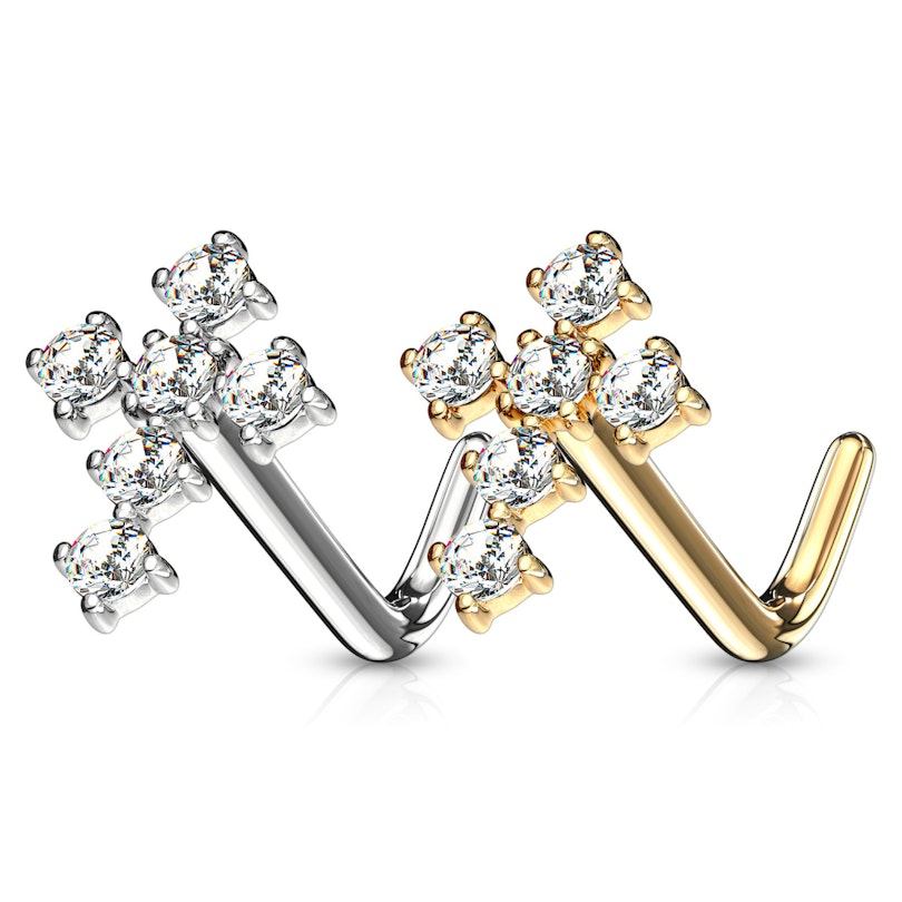 Tegemist on tõeliselt ilusa ninaneediga, alustades ehte värvist ja elegantsest ristikesest ning lõpetades nurga all olevast needivardast. Lisaks ilule on ehe ka suurepärase kvaliteediga ning valmistatud 14-karaadisest kullast. Teil on võimalik valida klassikalise kuldse ja laheda valgest kullast ehte vahel. Ehte needivarras on 90 kraadise nurga all, mis esitleb ehte kandjale tõelist mugavust, sest needi varras ei torgi kandja nina vaheseina, seda on meeletult mugav paigaldada ning ehe ei loksu ninast mitte kuidagi välja.