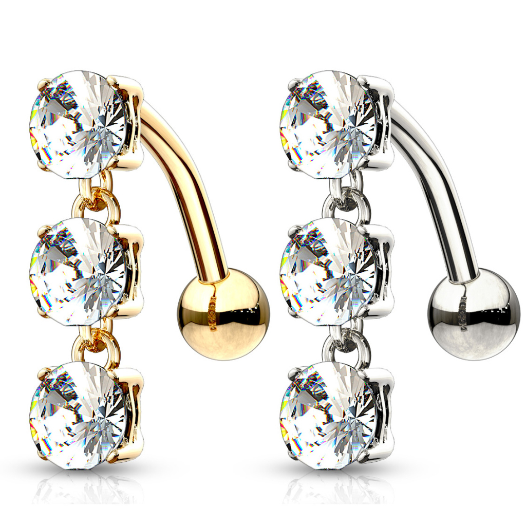 14-karaadisest kullast ümberpööratud ripatsiga nabaneet 3 kivikesega