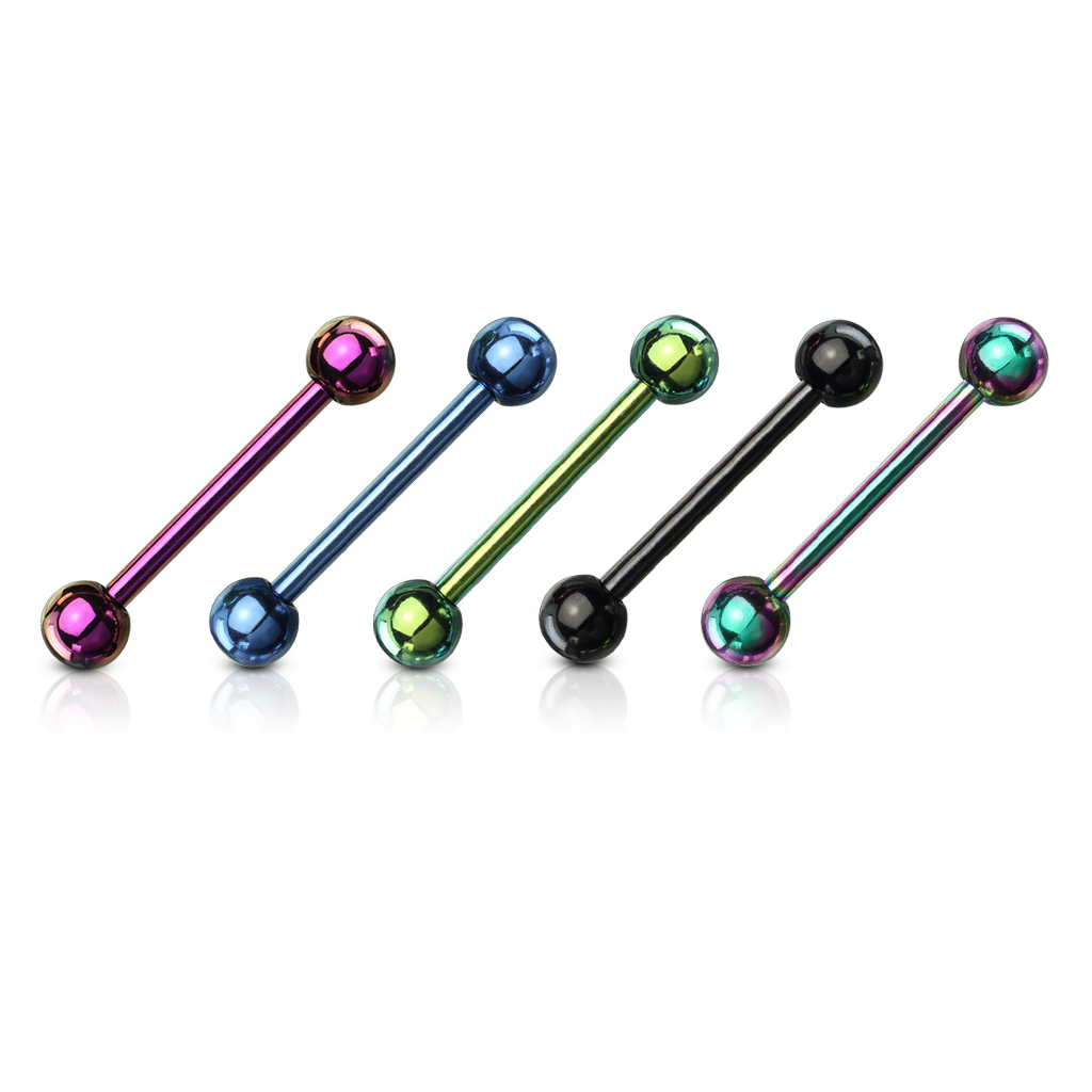 Selle komplektiga saad viis kõrgkvaliteetset keeleneeti, mis on valmistatud kirurgilisest terasest ja kaetud titaaniga. Iga neet on erinevat värvi ja üks neist on mitmevärviline.