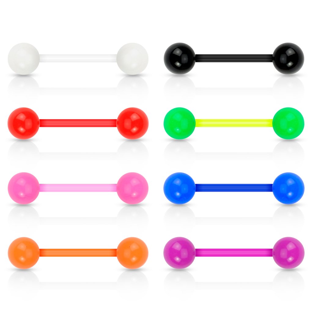 Selles komplektis on 8 keeleneeti, millest kõik on eri värviga ning valmistatud PTFEst või bioplastist. PTFE on väga pehme ja paindlik plastmaterjal, millel on palju eeliseid. Seda on mugav kasutada peamiselt tänu selle paindlikkusele, seega sa ei pane seda isegi keeles tähele. Kui lööd enda suupiirkonna ära, paindub ka see neet. Keel on lihas, mida me kasutame terve päeva, niiet sellisest materjalist needi kandmine on väga hea mõte.