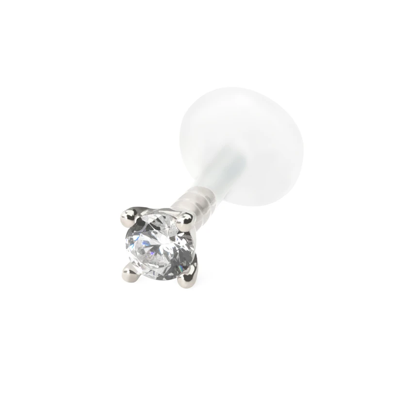 Nimi: Bioplastist labret neet, 14-karaadisest kullast pealne kivikesega-14k valge kuld / PTFE