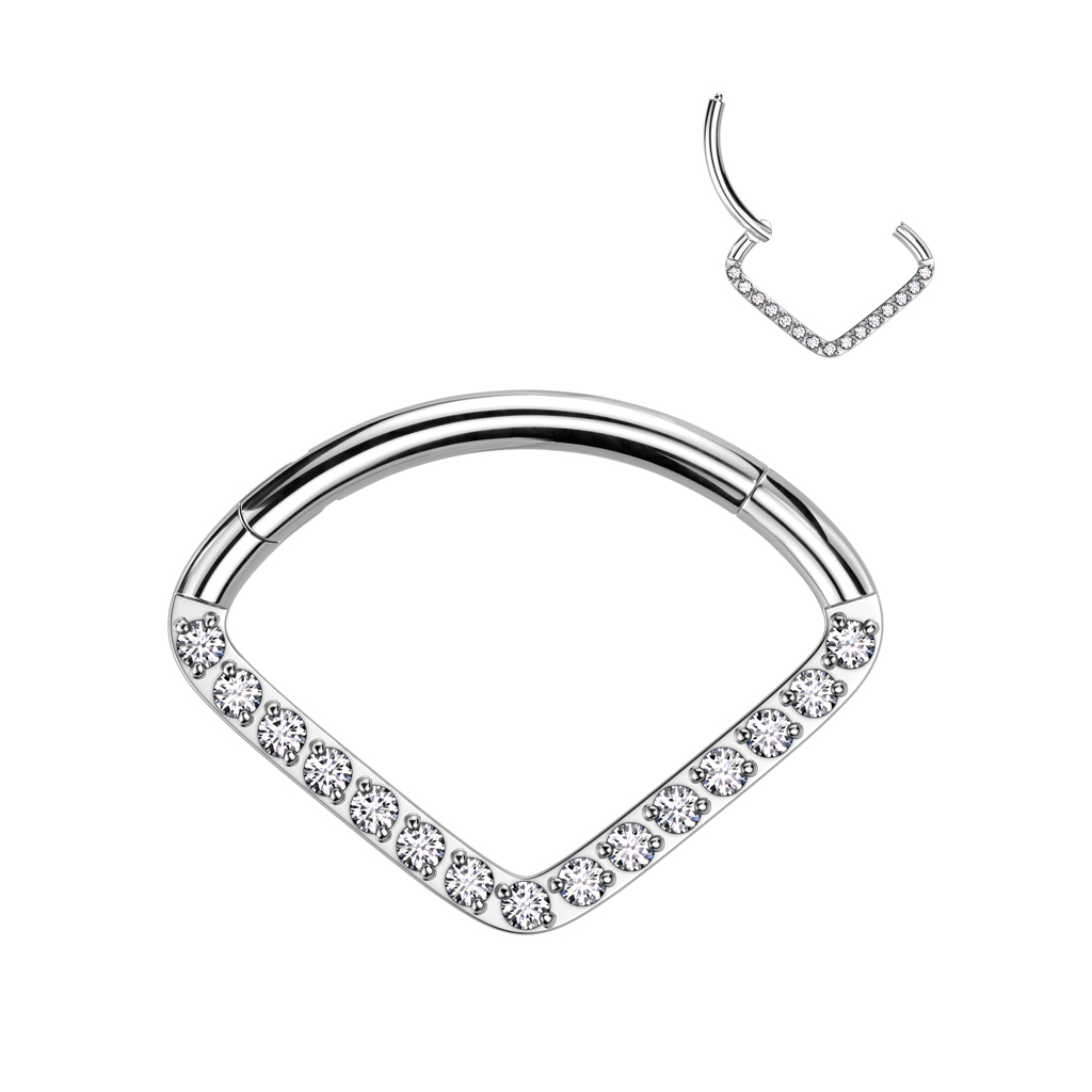 Chevroni-kujuline titaanist rõngas delikaatsete kivikestega