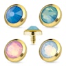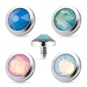 Sa saad valida nelja erineva opaali värvi vahel: valge, roheline, sinine ja roosa. Neil kividel on olemas sügav tähendus. Näiteks nad aitavad leida rahu ja vaikust ning tänu nende värvidele saavad nende kandjad tugevdada enda sisemist rahutunnet. See on põhjuseks, miks neid tihti kasutatakse mediteerimisel. Sul on samuti võimalik valida dermal top-i suuruse sõltuvalt sellest, kui väga sa tahad, et ehe silma paistaks. Kui sa tahad veidi diskreetsem ola, siis me soovitame valida suuruseks 3mm. Kui sa soovid just vastupidi püüda pilke, siis me soovitame tellida 5mm oma. Kui sa oled pigem kuldset keskteed kõndiv inimene, siis vali see, mis on suuruses 4mm.