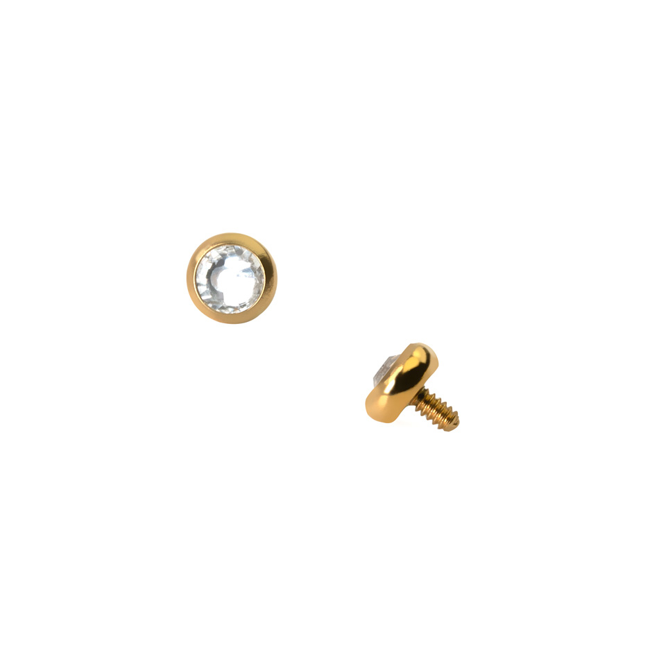 See kaunis bezel lõikega vääriskivi on mõeldud dermal ankrutele ning koosneb väiksest lamedast plaadist, mille keskel on klaar tsirkoonkivi.