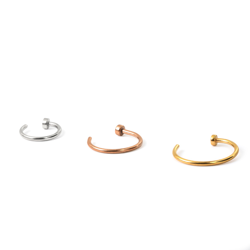 Ehe on saadaval mitmes erinevas värvitoonis, mille saate valida ülal. Näiteks on meie valikus, kuldne, hõbedane ja musta värvitooni ninarõngas.