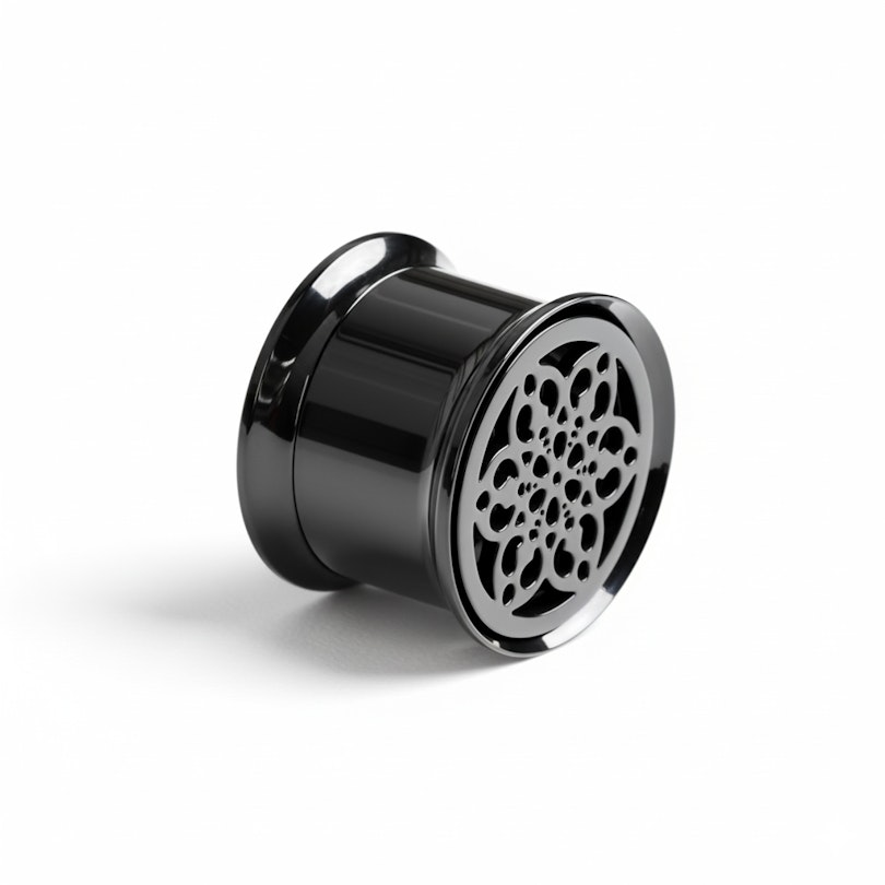 Filigraan lillega tunnel lisab venitatud kõrvadele elegantsi. Esiküljel on peenelt lõigatud lillemotiiv, mis ühendab julge disaini ja peene käsitöö, luues klassikalise, ent ägeda välimuse.
