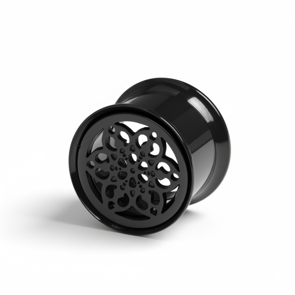 Filigraan lillega tunnel lisab venitatud kõrvadele elegantsi. Esiküljel on peenelt lõigatud lillemotiiv, mis ühendab julge disaini ja peene käsitöö, luues klassikalise, ent ägeda välimuse.