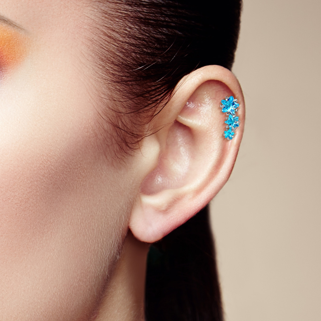 Osta endale see kaunis neet ja su helix neet särab nagu täheke. Sellel needil on üksteise kõrval kolm säravat tähekujulist kivikest. Nad moodustavad kerge kaare, mis sobib kõrva ääre kujuga.