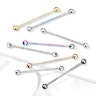 Kui sul on kõrvas industrial needistus, siis on meil sulle see suurepärane ehe. See koosneb sirgest barbellist nagu sa tead, koos kahe kuuliga - üks mõlemas otsas. Varda keskel on nikerdatud osa koos 8 pisikese kivikesega, mis on paigutatud lausa OCD perfektse täpsusega, Varras on valmistatud kirurgilisest terasest ja on saadaval mitmes erivärvis, samuti on ka kivikesed ernevates toonides. Kuid ainult läikiv hõbeda värvi barbell on saadaval erinevate kivikeste värvustega. Teisisõnu, värvilised barbellid on saadaval ainult läbipaistvate kivikestega.