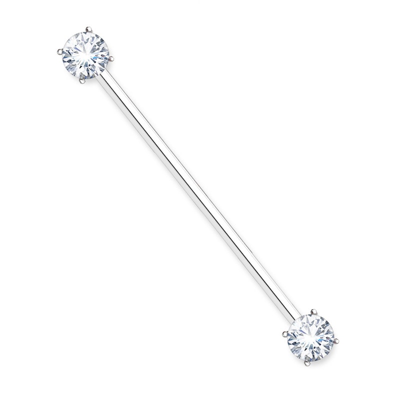 Tutvustame ennenägematut sirget barbelli idustrial neediaugu jaoks. See kahe kiviga barbell on valmistatud roostevabast terasest ning sellel on imeilusad zirconia kivid mõlemas otsas.