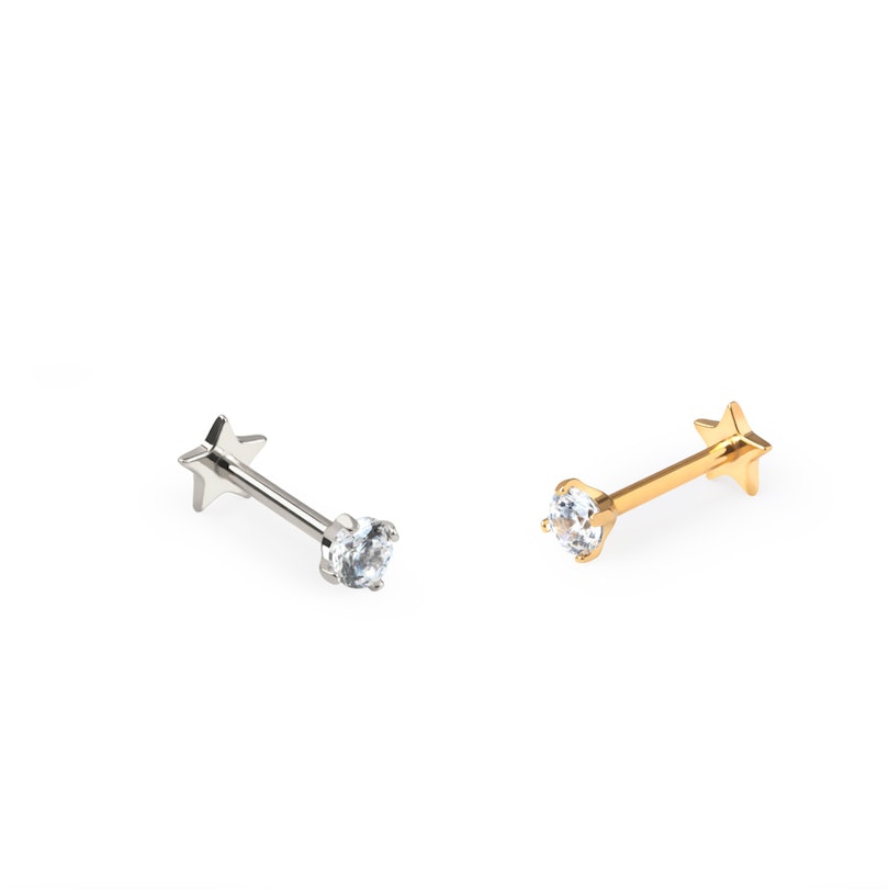 Sellel titaanist labretil on tähekujuline lame tagus, mis on ideaalne helix või kõrvalesta neetidesse, kus su ehte tagus on nähtav.