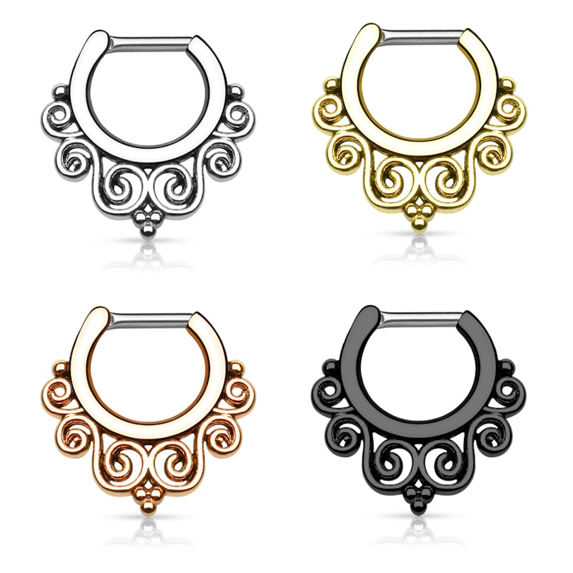 Ilus läbistus, mille paigaldamine on täiesti kohutav. See kangestus minu ninas kaks korda ja avas uuesti paranenud haava, mis peab nüüd uuesti paranema. Teiselt poolt on see ilus ja sobib mulle meheina üsna hästi.