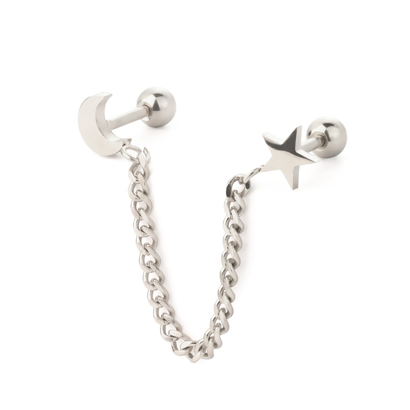 Kui sa oled piivalt õnnega koos, et omada kahte kõrva needistust, siis võibolla saad sa kanda seda ehet. Mitte kõik kõrvaaugustused sobivad ja seda barbellide kuju tõttu. Aga kui sul on näiteks kõrvanibus neet ja teine ülakõrvas, siis saad sa seda kasutada. Keti pikkus on ligikaudu 4 cm.