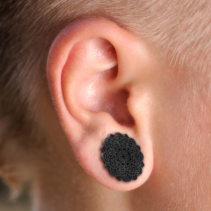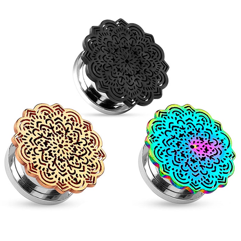 Siin sa võid tellida kauni ning detailse mandala erinevates värvitoonides, mis lisab veidi ekstra viimistlust niigi elegantsele ning armsale kujundusele. Ehte põhiosa on tehtud kirurgilisest terasest, sel ajal kui tagumine ots on keermestatud - sa võid selle lahti võtta, et tunnel lihtsamini kõrva sisse panna.