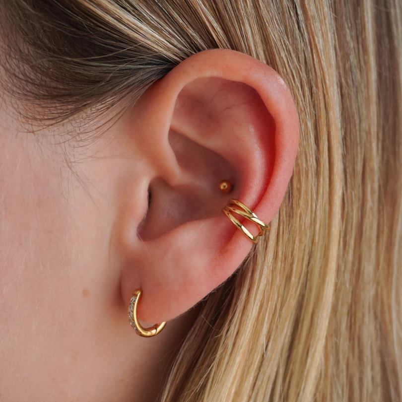 Selged jooned ja veidi struktuuri. Kolmekordne risti kõrvamansett ühendab kolm sujuvat riba, et täiendada sinu välimust julgel, ent tasakaalustatud viisil.