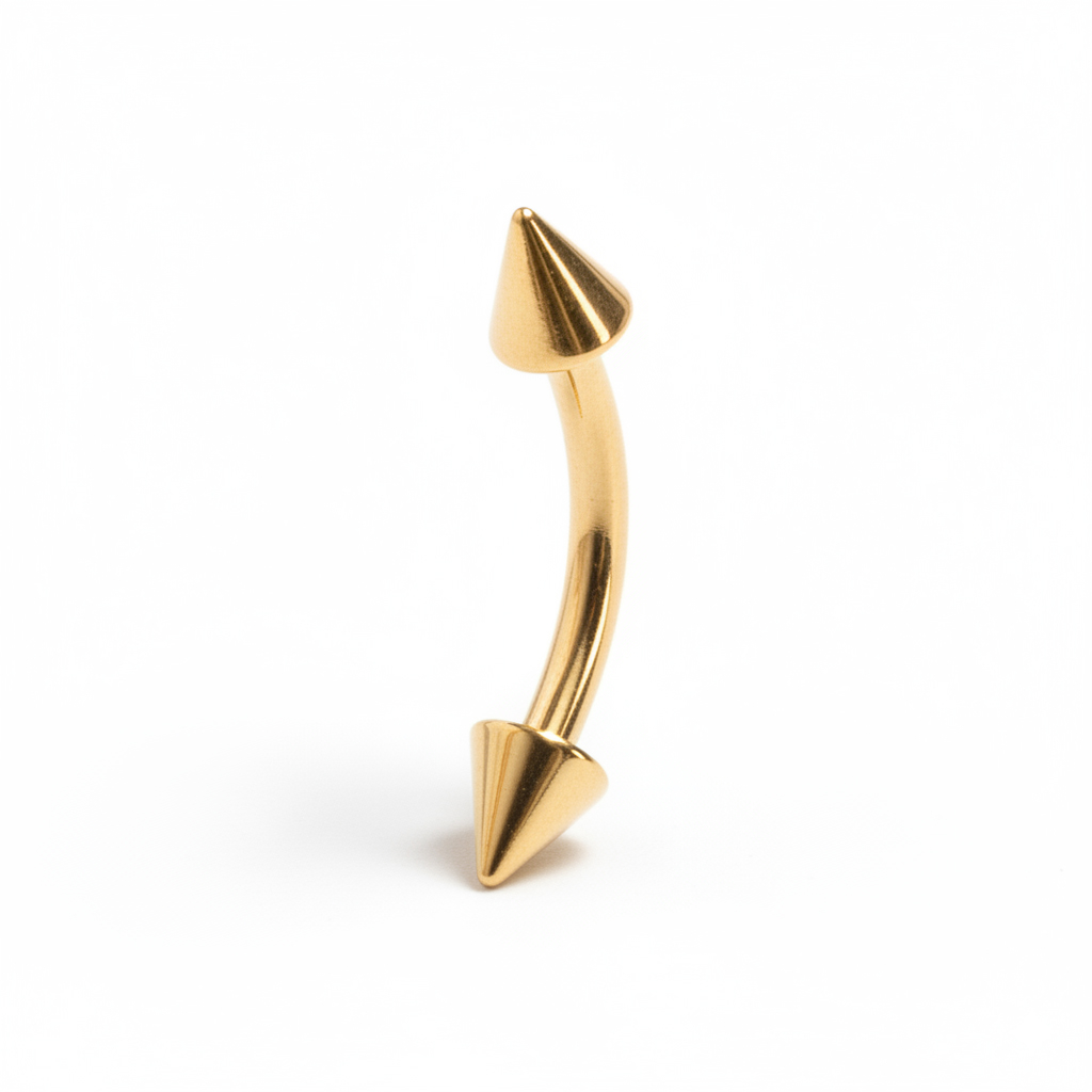 Kas vajad uutmoodi kulmu- või nibuneeti? See vaimustav kaardus barbell on kullatud ning selle otsad on koonusekujulised. Valikus on kaks paksust ja pikkust, niiet saad valida endale ideaalselt sobiva needi. Kaardus needid on suurepärane valik ka intiimneetideks, niiet misiganes needistus sul ka ei ole, saaksid seda kaardus neeti seal kanda.