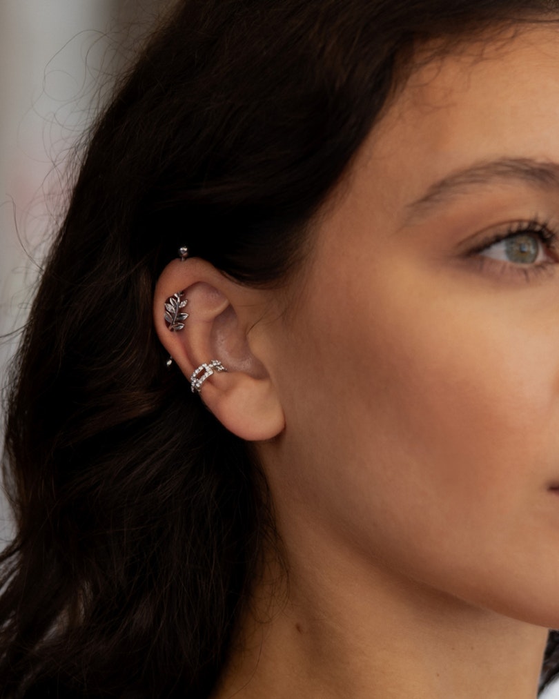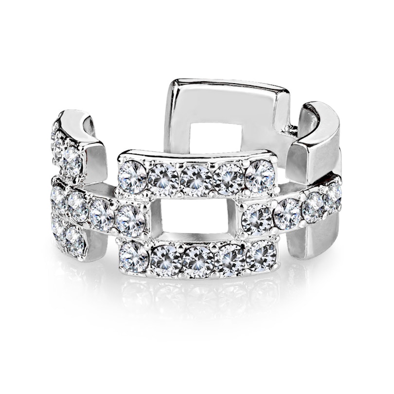 Ehte disain koosneb pisikestest ristkülikutest, millest osad on kaetud kvärvitute kivikestega, mis valguse käes võrratult kaunilt säravad, see meenutab justkui ketti. Välisküljel on kuni viis kivi igal ruudukesel - sa ei tunne kivikestest puudust selle kõrvamansetiga.