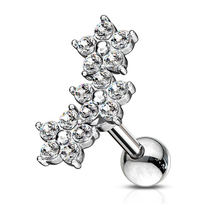 See neet sobib perfektselt helixi jaoks, nagu ülaloleva pildi mudelilt näha. Kolm lille moodustavad sujuva kaare, mis järgib kõrva ääre kuju. See kaar on kokku ligikaudu 12 mm pikkune ja koosneb kolmest viie õielehega lillest. Lilli on kolmes eri värvis. Kõik kolm mudelit on samasugused, väljaarvatud lillede värvi poolest.
