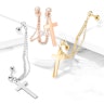 Kaunis komplekt kristallkividega neetidest ja ristist, mis on ühendatud kahekordse ketiga. See neet on tõeliselt imelise disainiga, mis võimaldab sul panna ühe kristallkividest hantli helixisse ja teise kõrvanibusse, kusjuures kett järgib sinu kõrva kuju.