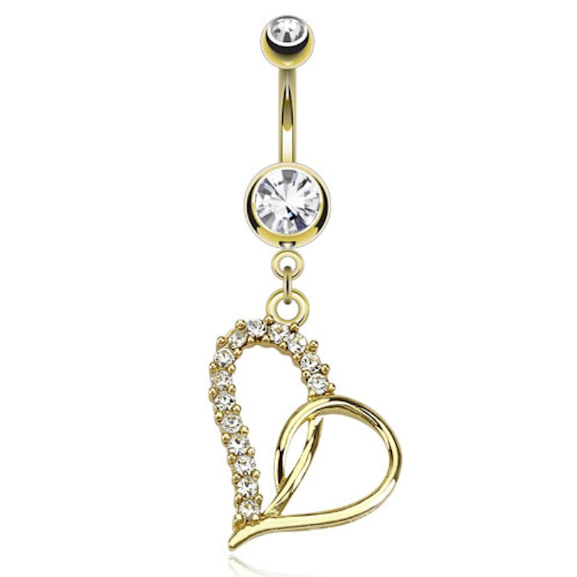 Kullatud nabeneet kivikestega kaunistatud südamega