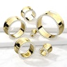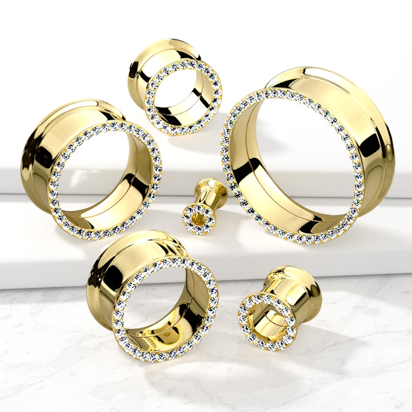 Tegemist on kirurgilisest terasest valmistatud ehtega, mis on kaetud kuldse värvikattega ja mille äärt kaunistavad värvitud kivikesed, mis säravad valguse käes maagiliselt.