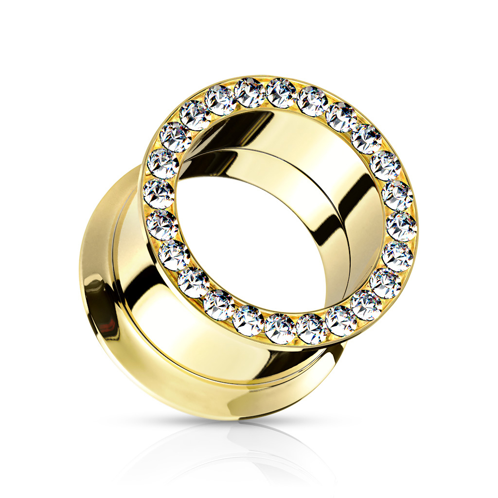 Tegemist on kirurgilisest terasest valmistatud ehtega, mis on kaetud kuldse värvikattega ja mille äärt kaunistavad värvitud kivikesed, mis säravad valguse käes maagiliselt.
