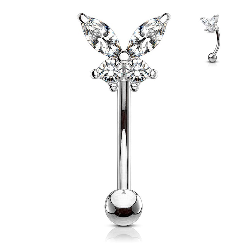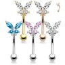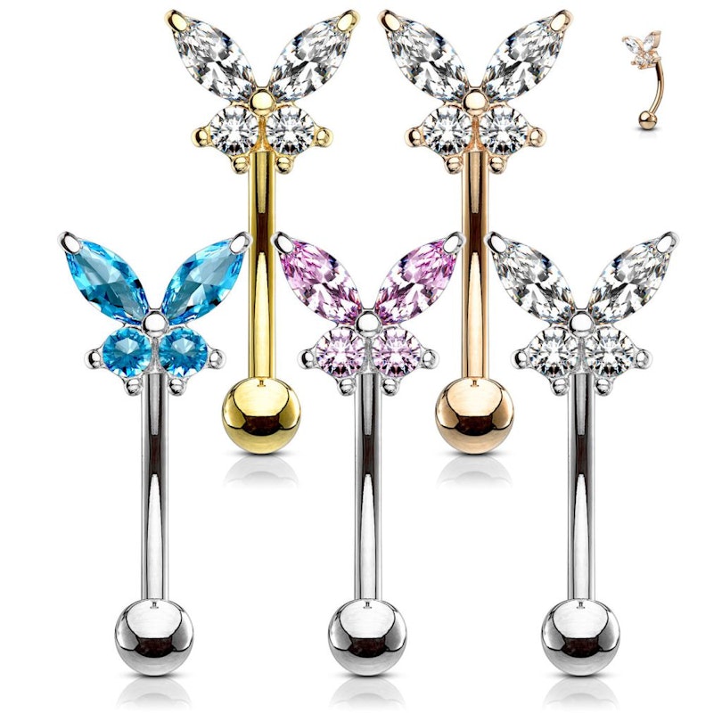 Ehe, mida sa siin lehel näed, on kaunistatud armsa väikse liblikaga. Liblika kuju pärineb kahest ümmargusest kivist, mis on alumisteks tiibadeks, ja kahest suurest ovaalsest kivist, mis annavad liblikale tema ülemisi tiibu. Sa saad ise valida nende värvi - viska pilk peale toote pildi kõrval olevatele variantidele, et näha meil olemas olevaid värve. Kivikesi hoiab paigal nii nimetatud pave seadistus, seega ei olnud vajadust kasutada kinnitusena liimi. Samas, me ikkagi ei soovita kanda seda ehet siis, kui on oodata kokkupuudet veega.