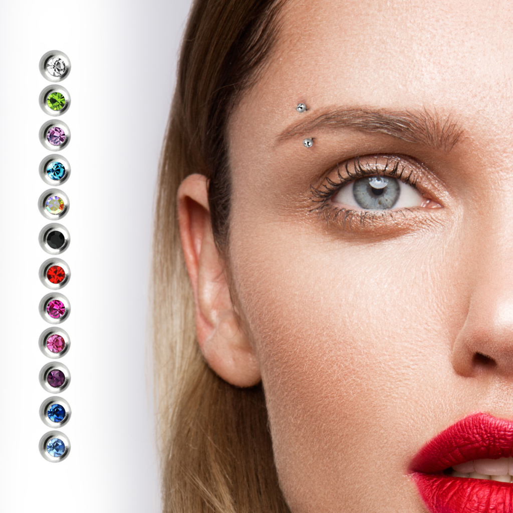 Otstes olevate kuulikeste diameeter on 3 mm. See on kulmuneedina kandmiseks üsna diskreetne suurus. Mõlemal kuuli sees on kivike, mis sealt välja ei ulatu. Kivikese saad endale valida paljude erinevate värvide vahelt. Vali enda lemmik.