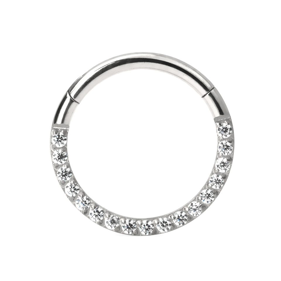 Rõnga esiosas on rida sädelevaid kive. Kivide asukohta peaksid kaaluma, sõltuvalt sellest, millise neediaugu jaoks rõngast soovid. Näiteks on kivid ideaalselt paigutatud septumi või daith-piercingi jaoks, kuid ninasõõrme jaoks võiks eelistada disaini, mille kivid on suunatud väljapoole.