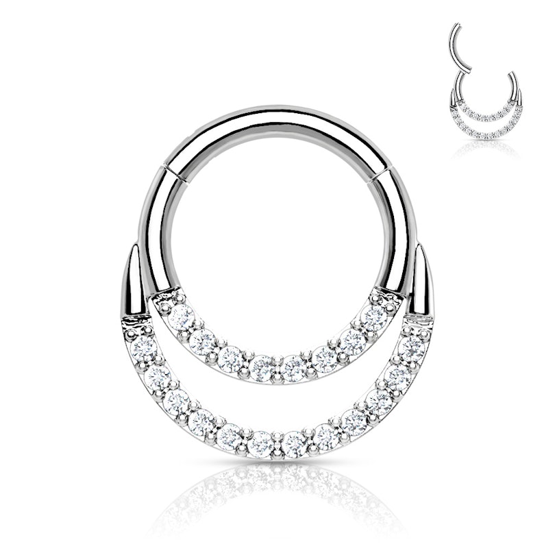 Rõngal on kaks kumerat rida pisikesi läbipaistvaid kive. Üks rida on osa rõngast endast, teine aga on tegeliku rõnga külge paigaldatud lisarida. Kivide arv ridades on proportsionaalne sinu valitud rõnga läbimõõduga.