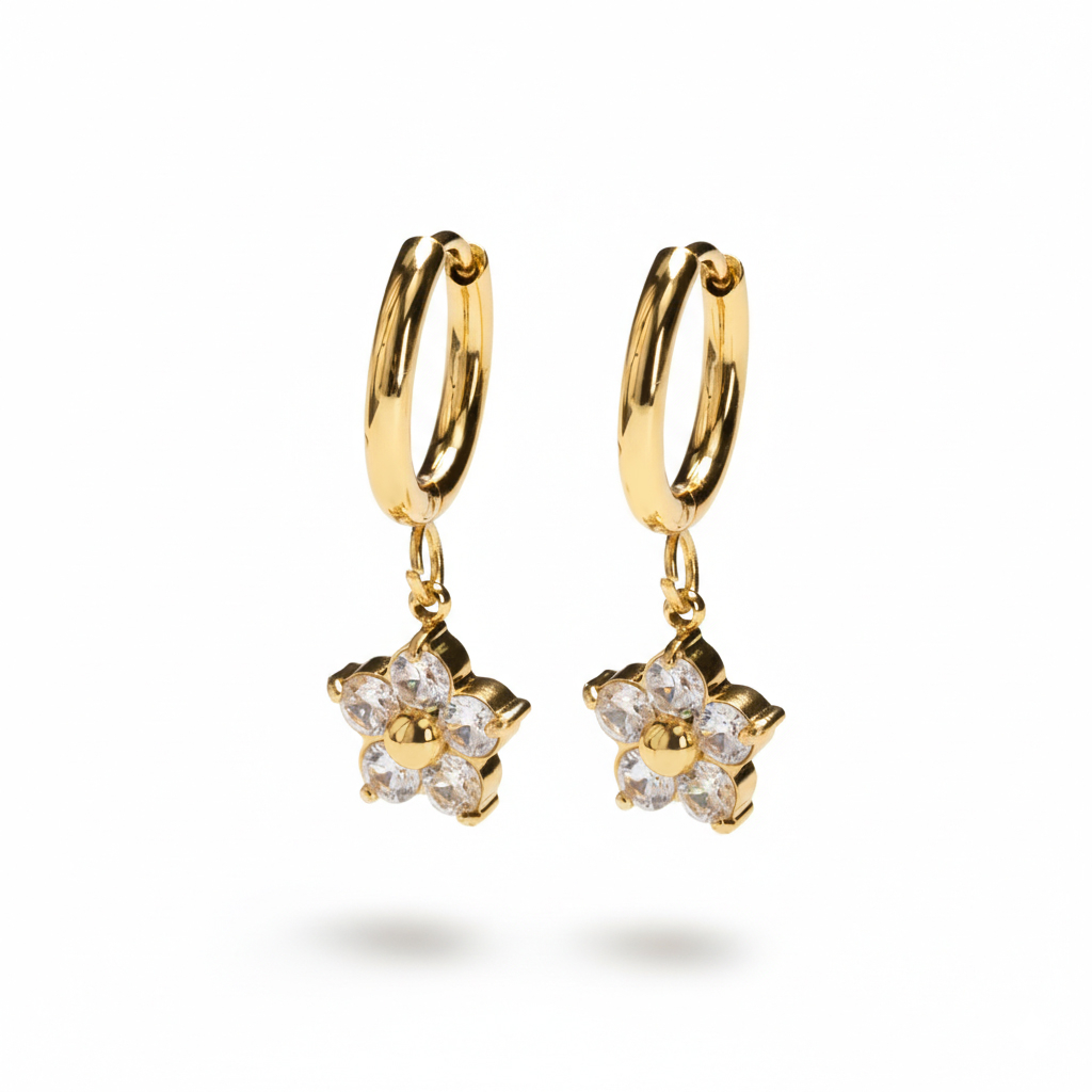 Need lilleripatsiga rõngad on loodud silma paistma. Igal rõngal on õrn lilleripats kividega kinnitatud prongidega, mis lisab just parajalt detaili, et liikudes pilke köita. Need on kõrvarõngad, mille kohta inimesed küsivad. Liigendiga kinnitusega on neid lihtne kanda ja veel lihtsam nautida. Saadaval kuldses ja hõbedas toonis.