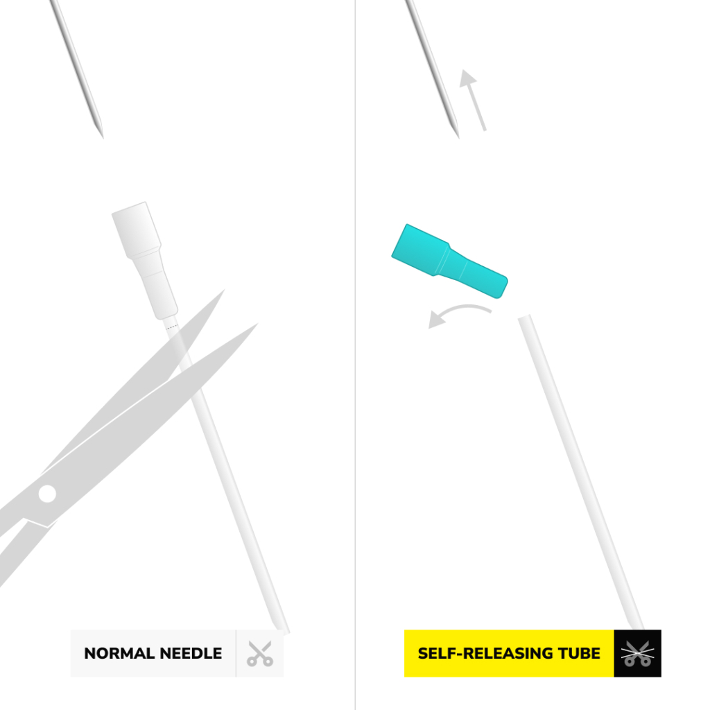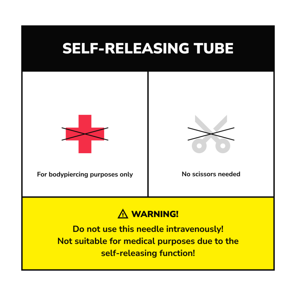 Mosquito nõelad on väga teravad ja EO gaasiga steriliseeritud. Igas karbis on 50 individuaalselt steriliseeritud nõela. Iga nõel on varustatud kateetriga. Selle mudeli nutikas asi on see, et kateetri lõikamiseks ei ole enam vaja kääre kasutada. Nõel on varustatud isevabastava funktsiooniga, mis tähendab, et kateetri värviline osa langeb maha, kui nõel pärast augustamist välja tõmmatakse. Nii jääb kehasse ainult kateeter - valmis, et tõmmata ehe läbi augu.