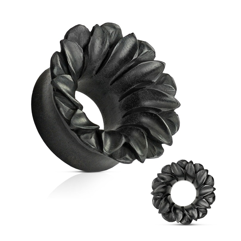 Musta värvi orgaanilisest puidust lillemotiiviga tunnel