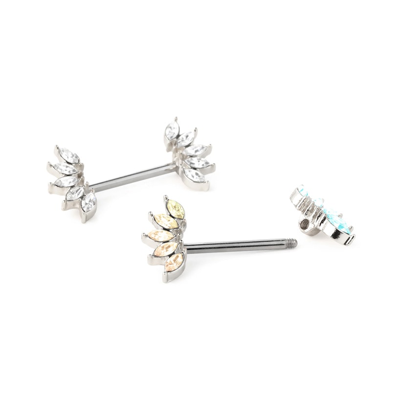 See ehe on kaunistatud teravatipuliseks lõigatud kalliskividega. Nende kuju kohta võib öelda ka ovaalne. Erinevuseks nende kahe vahel see, et ovaalsel kivil on ümarad otsad, teravatipulisel mitte. Kivid paiknevad 16 mm varda mõlemas otsas. Mõlemas otsas on 5 kivikest.