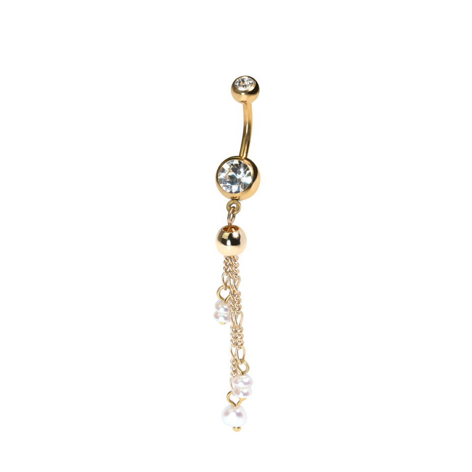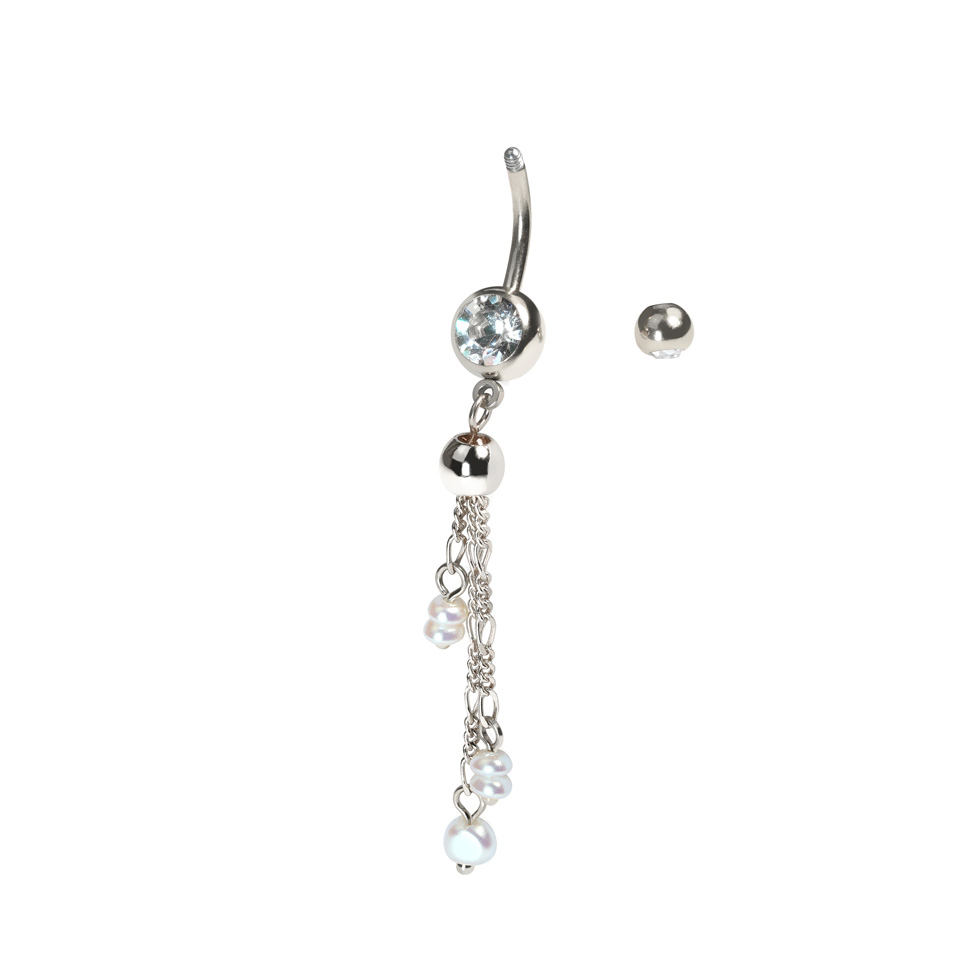 Selle kettide ja pärlitega nababarbelli mõlemas kuulis on raamitud kuubilise tsirkoonia kivid ja alakuulist ripuvad õrnade kettidega eri suurustes sünteetilised pärlid.