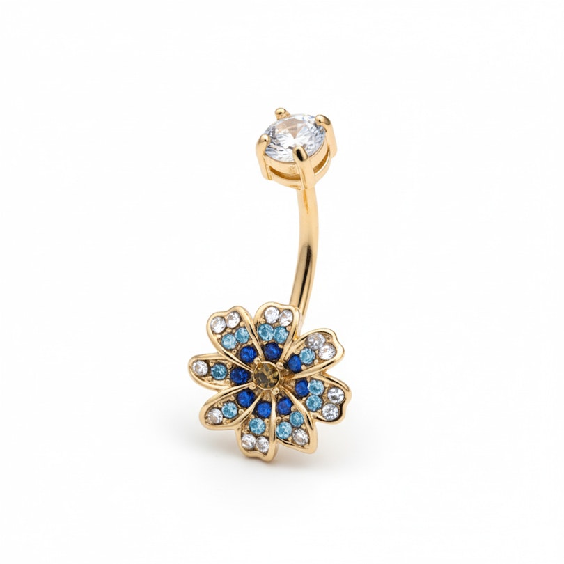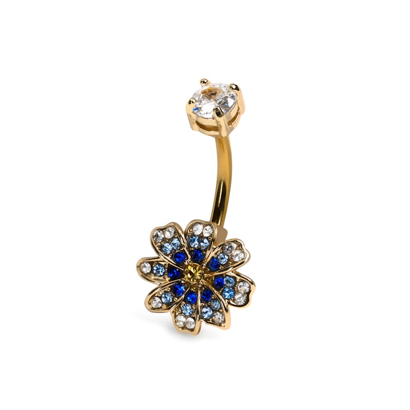See armas nababarbell on loodud crop topi hooajaks. Ehtel on väikestest eri sinist tooni kivikestest lill, mille keskmeks on kollane kivi. Ülakuuliks on läbipaistev kivi.