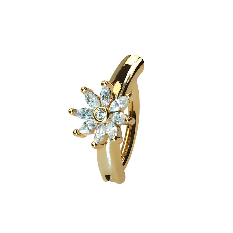 Sellel kaunil nabarõnga klikkeri (clicker) keskel on sätendav lill. Lill on valmistatud 9 kuubilise tsirkoonia kivist. Ehe on saadaval kuldse ja hõbedase viimistlusega.