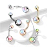 Sa tunned selle ära seebimullidest või nähes õliloiku vee peal. Väga läkivat pinda, mis muudab värvi, kui miski liigub, on põnev vaadata. Sama on selle nabaneediga. Kivikesed, mis asuvad nii üla- kui ka alakuulis, muudavad värvi nagu bensiin veepinnal. Kuna siin olev pilt on paigal, siis ei ole siin võimalik seda efekti näidata. See nõuab, et näeksid seda ise päriselus keerates seda küljelt küljele. Seega, kui kannad seda nabaneeti oma nabas nähtaval kohal, siis on liikudes see efekt näha. Neet on valmistatud kirurgilisest terasest ja sellel on nabaneedi standard mõõtmed: paksus/suurus on 1,6 mm ja pikkus 10 mm. Ülemine kuul on 5 mm ja alumine kuul on 8 mm. Sa saad valida kolme materjali värvuse vahel ja kolme erineva kivikeste värvuse vahel. Siiski, pane tähele, et ainult hõbeda tooni mudel on saadaval erinevate kivikeste värvidega.
