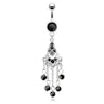 See kaunis detailse ja unikaalse kujundusega nabarõngas on valmistatud kirurgilisest terasest ja tal on tavaline ülemine hõbedane kuul ning suur must lillekujuline kivike selle all. Ripatsi küljes on palju musti kivikesi ja kette. Ketid on erinevate pikkustega, keskel kõige pikem ja äärte pool lühemad. Iga keti otsas ripub musta värvi kuulike.