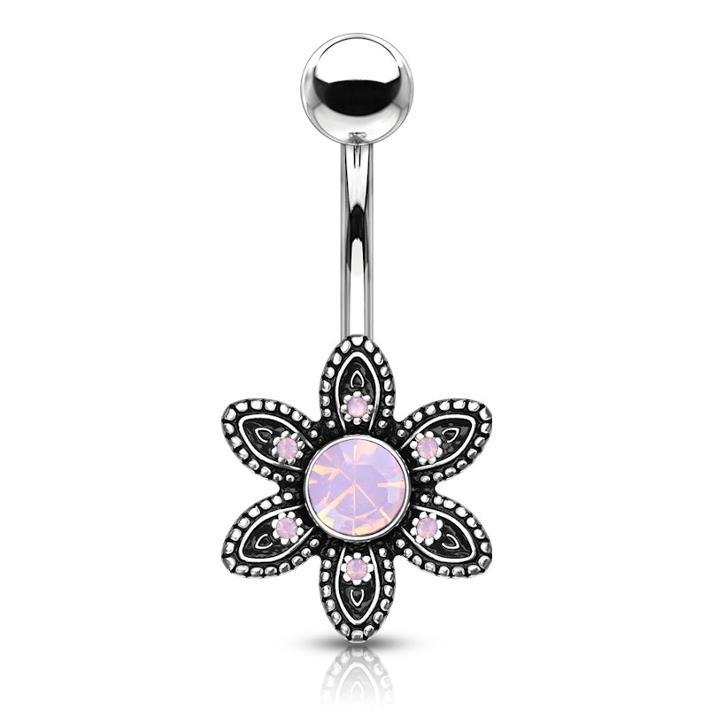 Nabaneet lillekujulise kaunistuse ja ümara opaliit kiviga