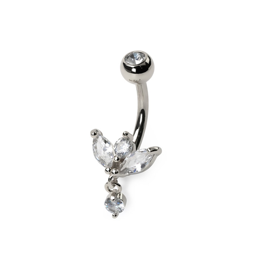 Ole valmis särama selle hämmastava kirurgilisest terasest nabarõngaga, millel on pimestav trio kuup tsirkooniumiga kaunistatud markiiskividest ja õrna raamistatud kiviga ripats. Kirurgiline teras tagab vastupidavuse ja mugavuse. Varras on 10 mm pikk ja selle paksus on 1,6 mm. Saadaval valikus kuld-, hõbe- ja roosakuldses värvitoonis koos läbipaistvate kividega. Võta omaks glamuur ja näita enesekindlust selle suurepärase nabaneediga.
