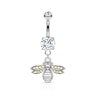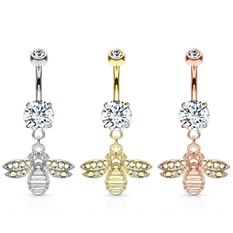 Ülaltoodud nabaneedil on ripatsiks armas väike mesilane. Mesilane on valmistatud messingist ja tema tiivad sisaldavad mitmeid pisikesi kive, mis peegeldavad enamikku vikerkaarevärve. Me nimetame seda virmalisteks, sest see meenutab põhjamaist valgust. Mesilane ripub 10 mm pikkusel kaardus vardal, mille jämedus on 1,6 mm. See on valmistatud kirurgilisest terasest, nagu enamik teisi nabaneete, mida poest leiad.