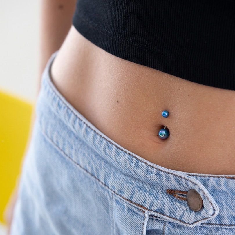 Siit võid sa leida lihtsa, kuid väljapaistvalt isikupärase nabaneedi. Ehe on iseenesest tavaline kumerusega neet, aga mõlemas varda otsas on sel üsna pilkupüüdvad kuulid, mis on tehtud kirurgilisest terasest. Küll aga on need kaetud kihiga, mis annab neile metalse välimuse, et luua imeline värvide mäng.