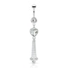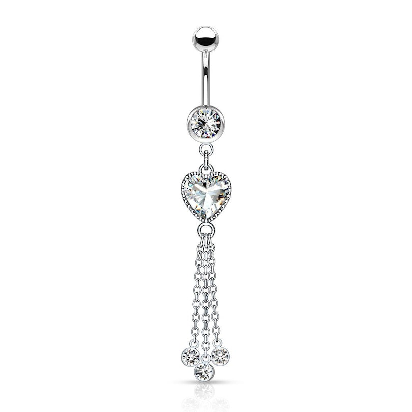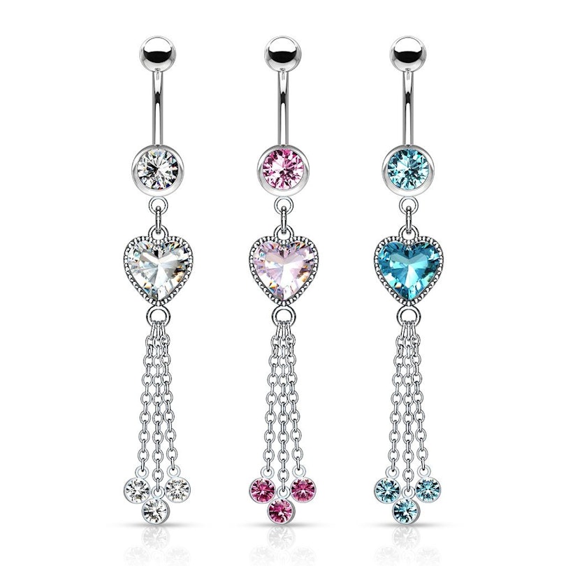 Sellel nabaneedil on tõeliselt palju kivikesi - ainus koht, kus sa neid ei näe, on ülemine kuul. Ehe on toodetud kirurgilisest terasest ja messingist. Messingist osa on ehte alumiselt poolel ripatsi kujul. Ripats on kaetud metaljalt särava kattega, tänu millele ta on sama värvi kirurgilisest terasest struktuuriga.