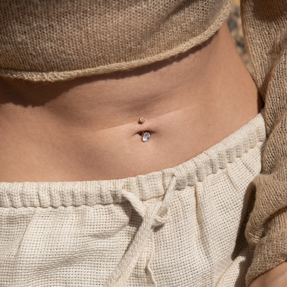 Kuna see on valmistatud titaanist, on see ese hüpoallergeenne, vastupidav, kerge ja korrosioonikindel, mistõttu sobib see ideaalselt tundlikule nahale, pikaajaliseks kandmiseks ja üldisele mugavusele. Keermevaba push-in sulgemismehhanism tähendab, et seda on kerge kanda ja vahetada. Varda paksus on 1,6 mm ja pikkus 10 mm, seega sobib see mugavalt enamiku nabaaugustuste jaoks. Lille läbimõõt on 5 mm ja kivi 8 mm. Saadaval kullast või hõbedast, näita oma glamuurset poolt selle kauni ehtega.