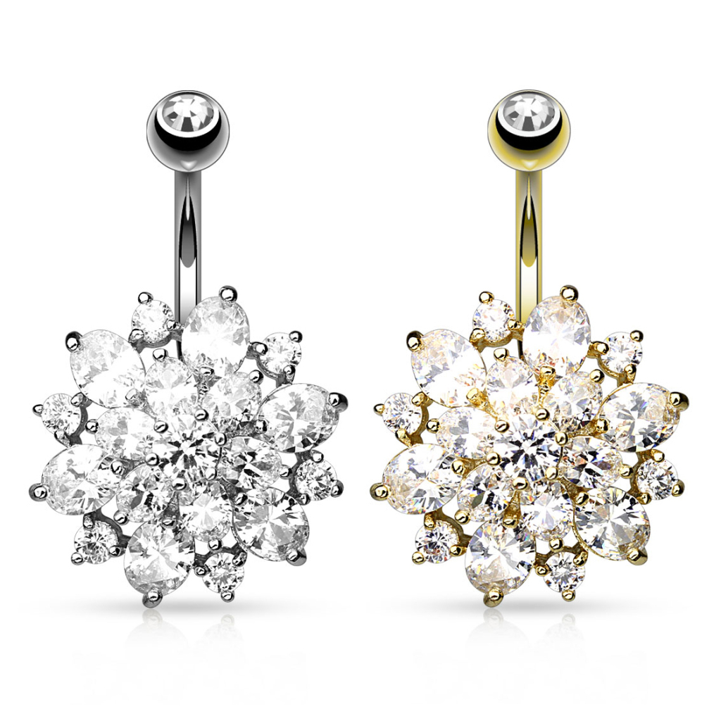 Kas sa soovid kanda naiselikku nabaneeti? Sel juhul sul on olemas võimalus teha seda stiilselt, tellides endale see vapustav ja märkimisväärne nabaehe, mis on kaunistatud suure ning kauni kivikestega kaunistatud lilleõiega.