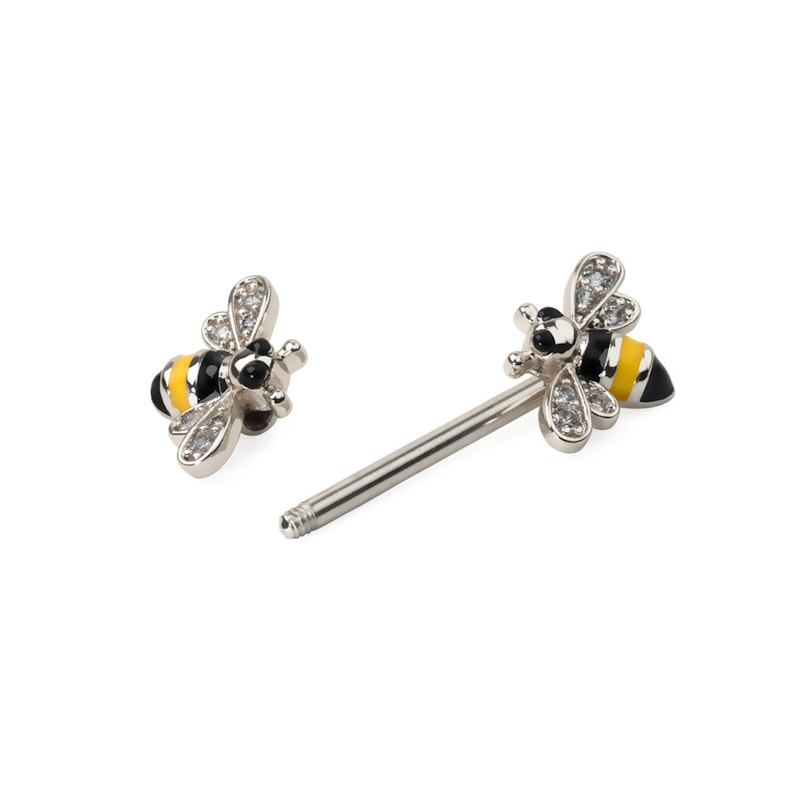 Meil on ilus pakkumine, kui otsid oma rinnanibude augustamiseks kõige unikaalsemat disaini. Ehte koosneb 14 mm sirgest barbellist, kuid kantav pikkus võib varieeruda, arvestades mesilaste omavahelist vahemaad.